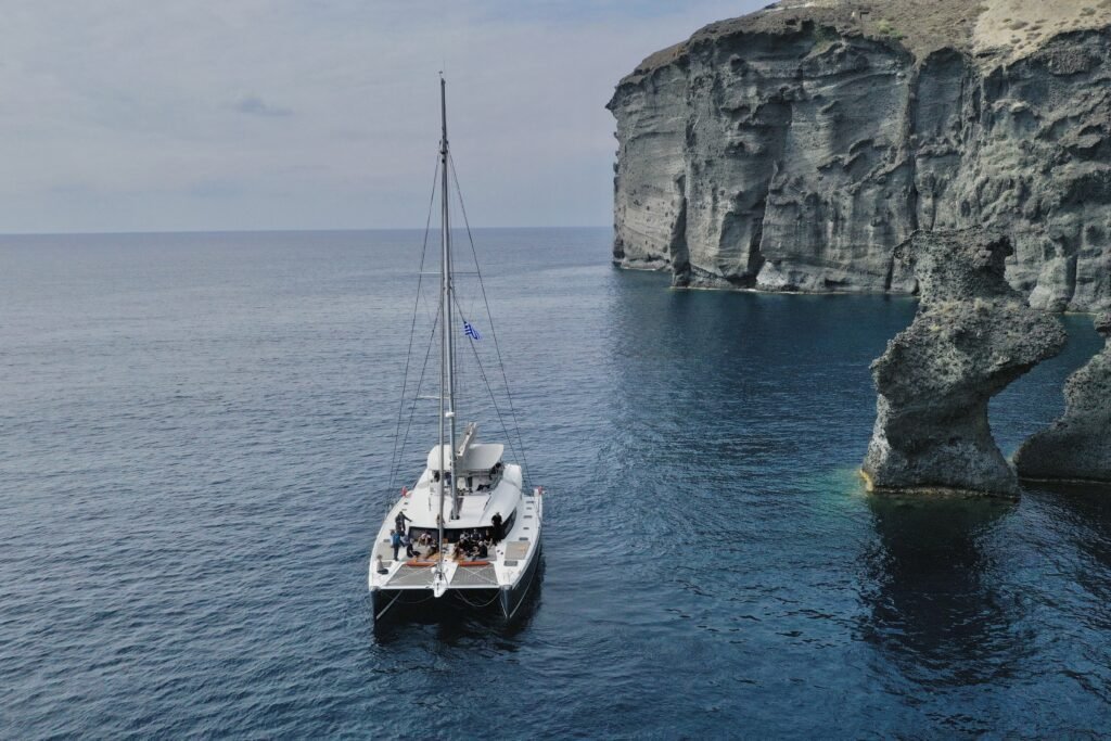 This is a sample itinerary of a Santorini catamaran shared tour for inspiration. Your personalized Santorini catamaran tour will be tailored precisely to match your interests, dates, and special requests.