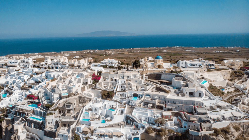 After Thirassia, you will be flying towards Oia, the famous village of Santorini. Blue-domed churches and colorful houses can be seen close enough to the helicopter. In certain cases, it’s possible to fly a bit closer, so you can capture the perfect selfie in Santorini. After a while, you will return to the base in the south of the island.