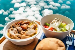- Taste our full menu of roasted chicken fillets, rice with vegetables, Greek salad and wine, everything freshly prepared with olive oil from our family production