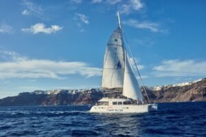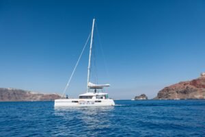 The Gems of Santorini. The diamond-shaped Lagoon 520 and the award-winning Lagoon 500 provide an all-inclusive sailing experience.